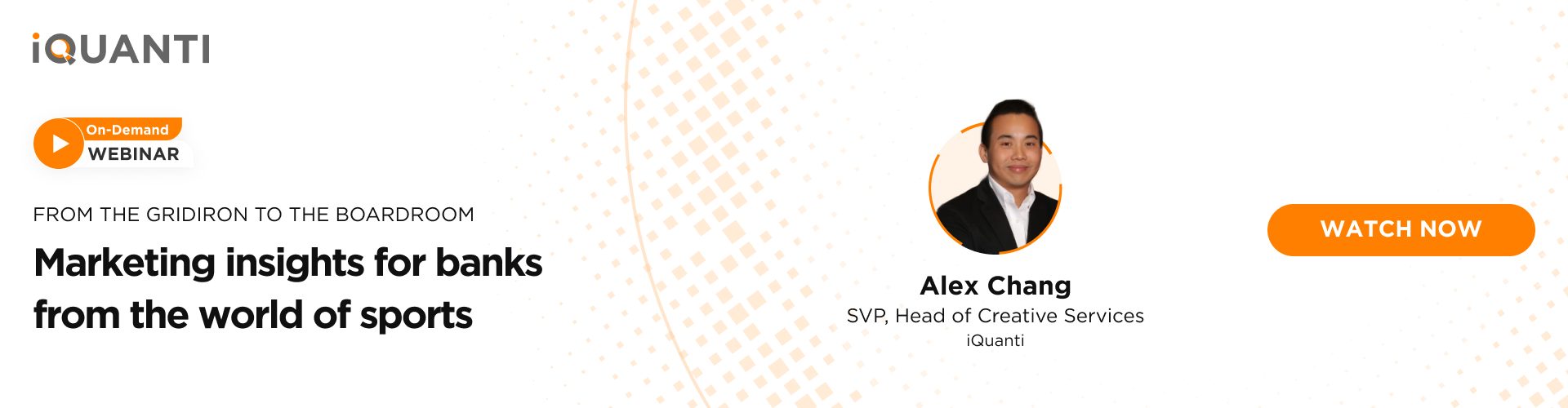 In this case, that unexpected place is the world of sports. Watch this on-demand webinar to hear from Alex Chang (SVP, Head of iQuanti Creative and former CMO, San Francisco 49ers) as he shares his unusual path from financial services to sports and back, along with insights from his 15 years in sports that banks can benefit from.